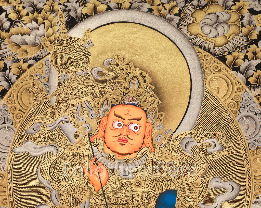 Majestic Vaishravana, Guardian of the North & Supreme Wealth Deity Artwork | Traditional Tibetan Art with 24K Gold & Sacred Iconography