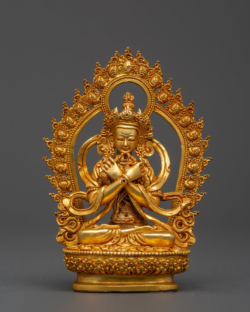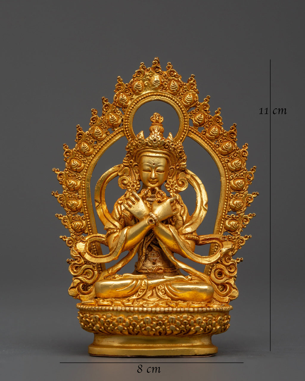 Vajradhara is revered as the source of all tantric teachings in Vajrayana Buddhism and is fundamental to many esoteric lineages within this tradition. The figurine is holding two vajras (thunderbolt scepters) crossed at his chest, symbolizing the unity of wisdom and compassion, as well as the indestructible strength of the enlightened mind. Placing this statue in your shrine or meditation area invokes blessings of clarity, knowledge, and inner peace.