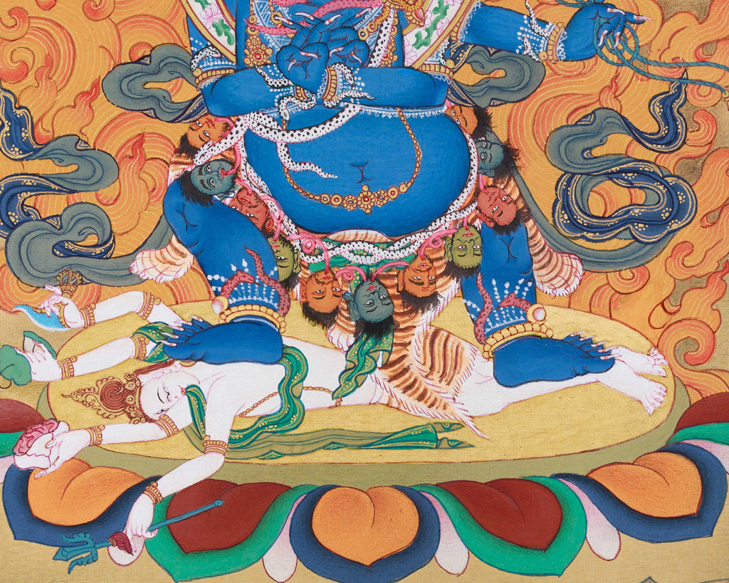 HAND-PAINTED WITH NATURAL LHASA STONE COLOR AND GENUINE 24K GOLD IN TRADITIONAL KARMA GADRI STYLE