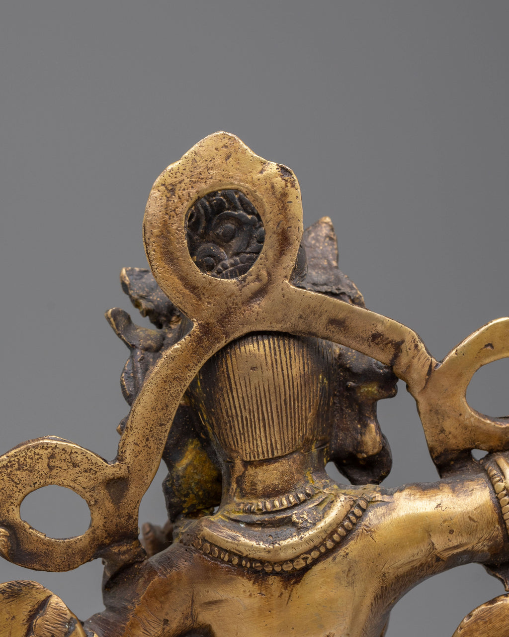 Vajrapani is revered as the powerful protector of the Buddha’s teachings and the embodiment of enlightened strength. He is traditionally depicted in a wrathful form, symbolizing the force that removes obstacles and dispels ignorance. His dynamic posture and intense expression represent protective energy guided by wisdom and compassion, central to Vajrayana Buddhist iconography.