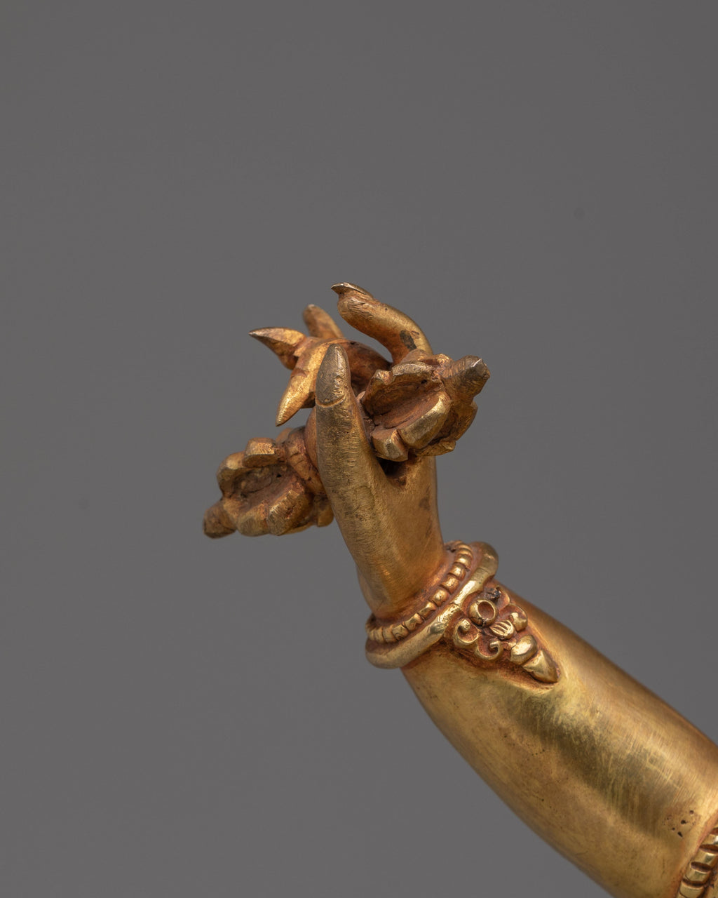 Vajrapani is one of the earliest deities in Mahayana Buddhism, representing the power of all Buddhas. He is depicted holding a vajra, which symbolizes the enlightened force of full spiritual awakening, capable of overcoming ignorance and adversity. As a Bodhisattva embodying the power of all Buddhas, Vajrapani plays a crucial role in protecting and guiding practitioners on their path to enlightenment.