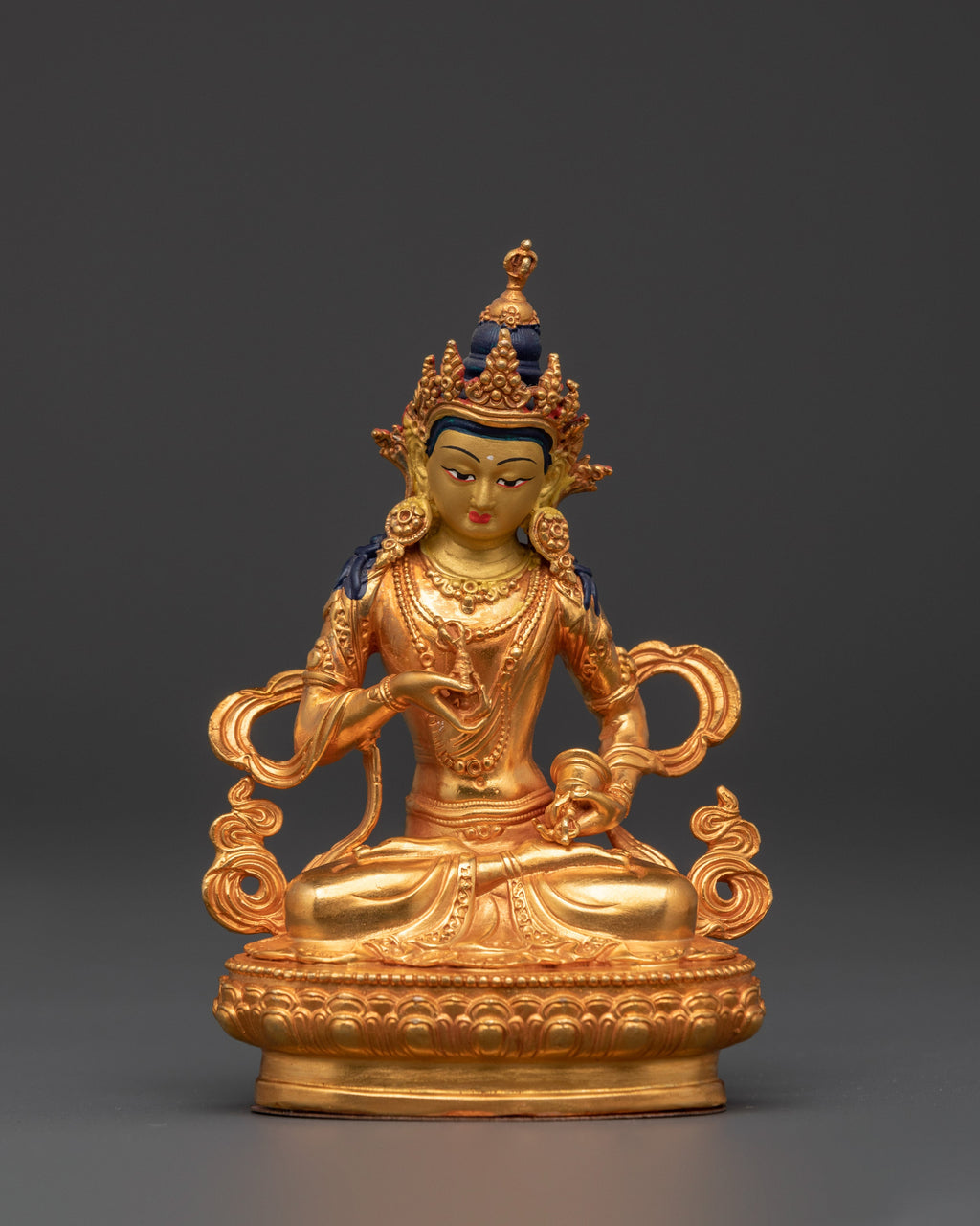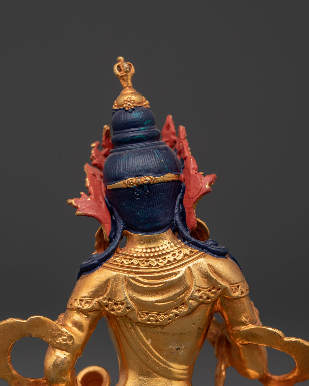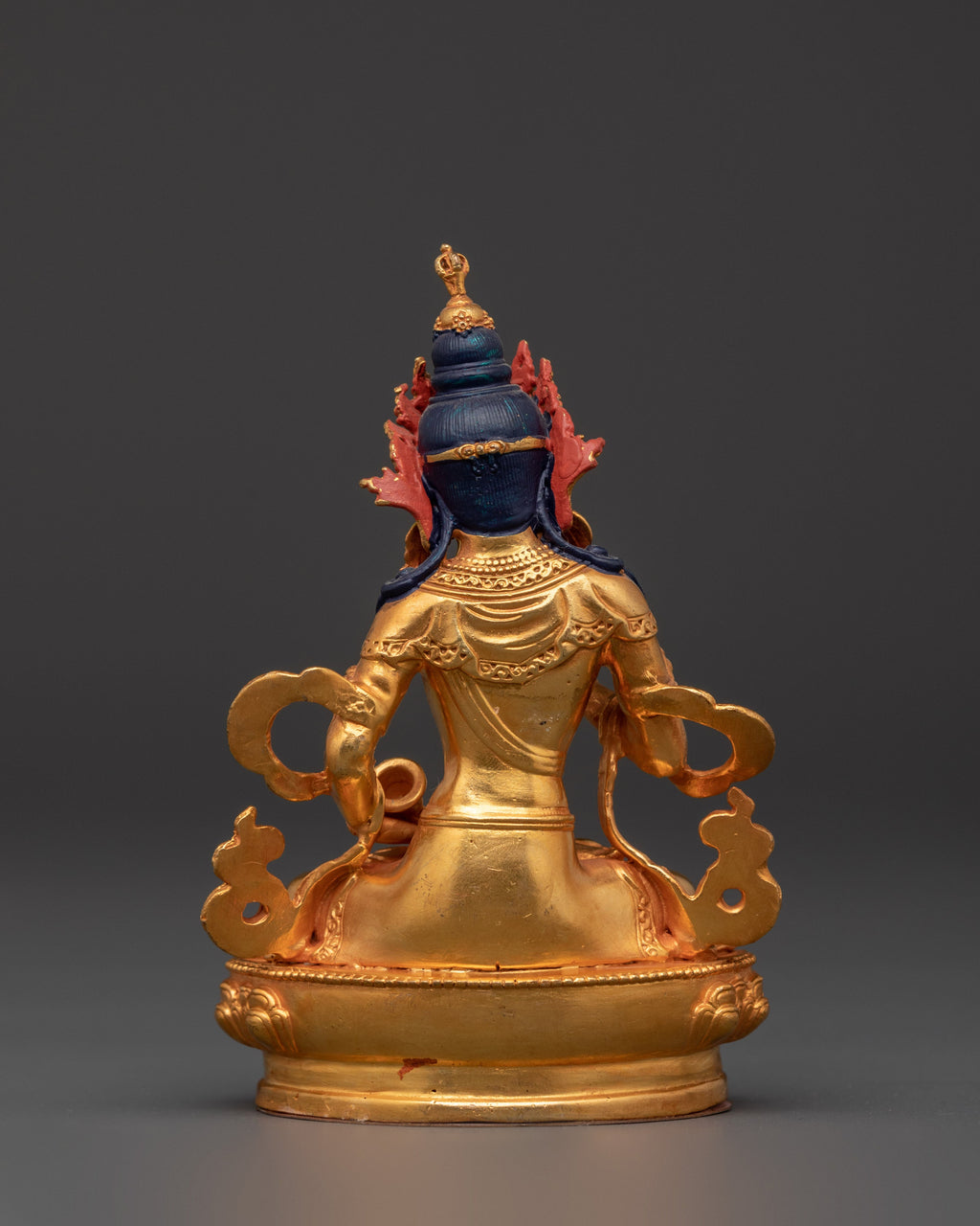 The complex design in the sculpture represents traditional Himalayan creativity. The flowing garments, serene facial appearance, and elegant hand gestures reflect the essence of enlightenment and inner transformation. This statue is suitable for personal altars, meditation areas, or as a spiritual gift, promoting tranquility, contemplation, and safeguarding inside your sacred environment. Its miniature size makes it particularly appropriate for travel shrines or more modest domestic arrangements.