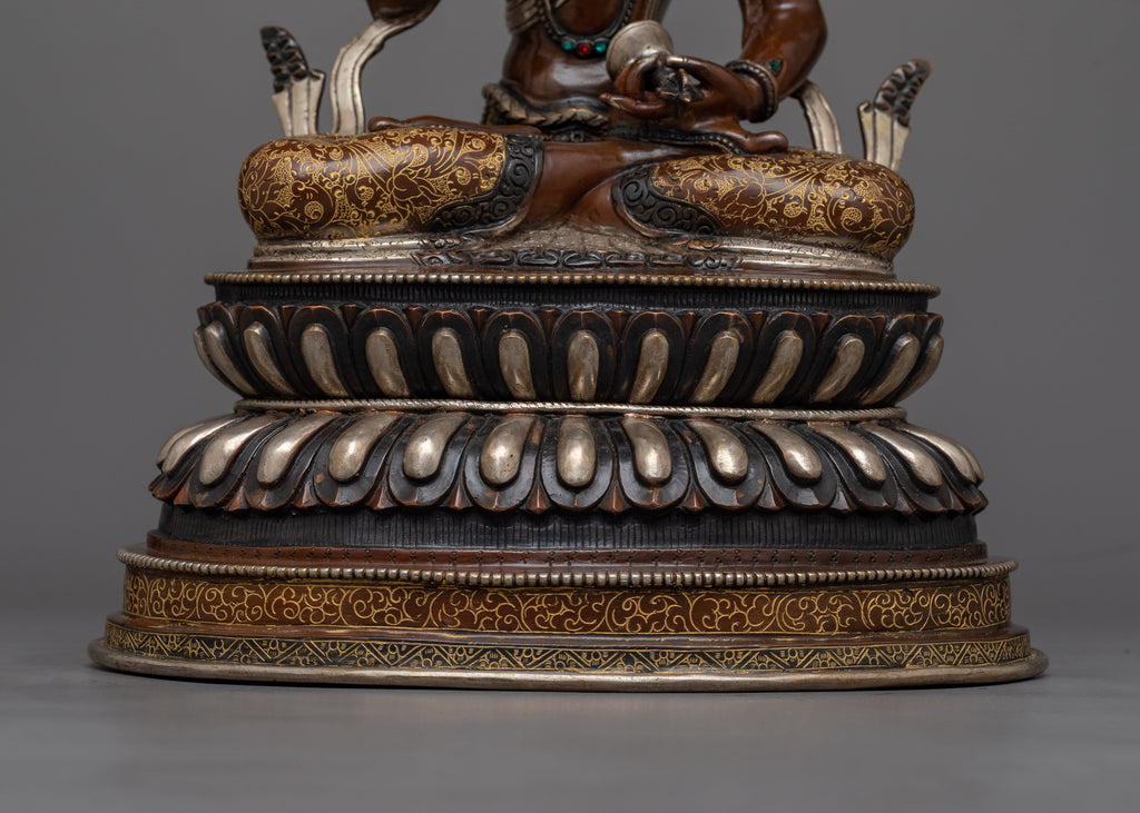 Experience the lovely artistry that brings this deity to life, with detailed artwork in gold and acrylic that accentuate the rich textures of his ornate clothing and the holy objects he is holding. The elaborate layout of every part of the statue, from the delicate lotus base to the exquisitely etched vajra in his palm, reflects the artisan's commitment to crafting a potent spiritual image.