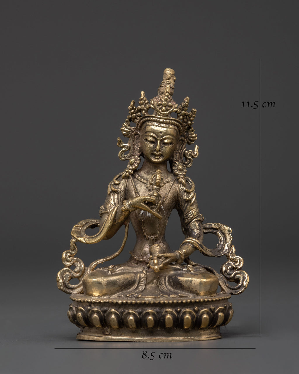 This traditional Buddhist Vajrasattva statue honors one of Tibetan Buddhism's most prominent meditational deities. This brass figure, measuring 11.5cm tall by 8.5cm broad and weighing 0.32kg, is suitable for meditation altars or spiritual home decor.