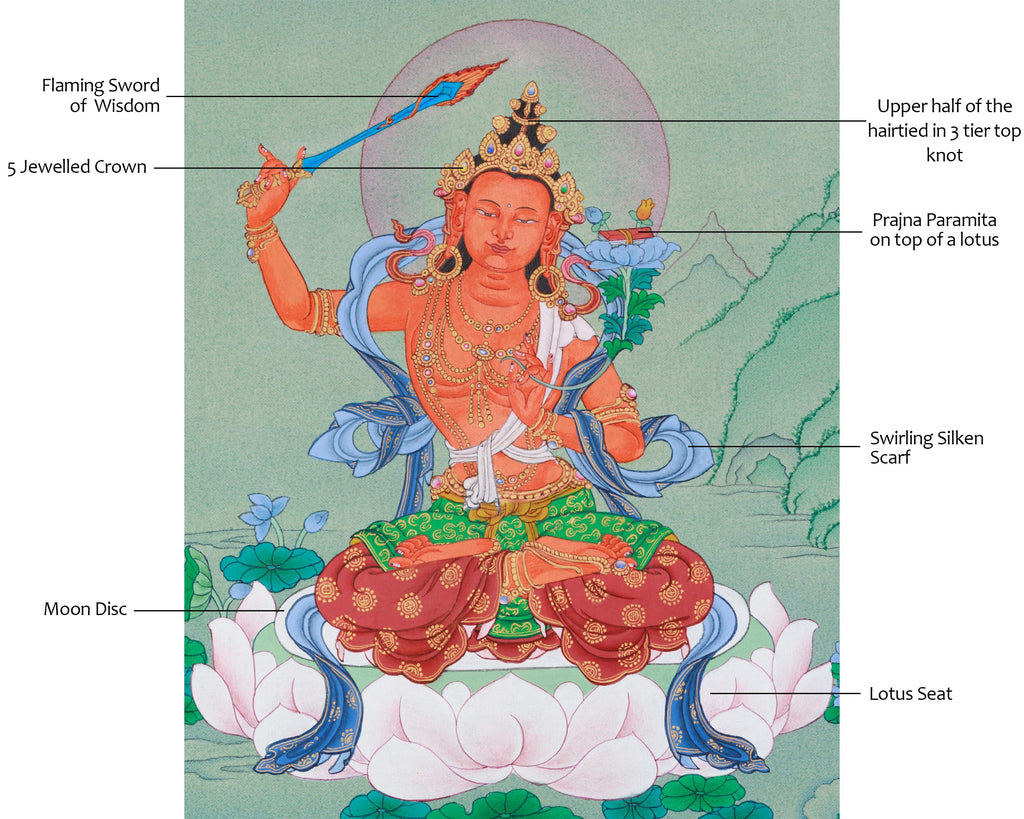 Hand-Painted Vajrayana Deity Manjushri Thangka | Dharma protector
