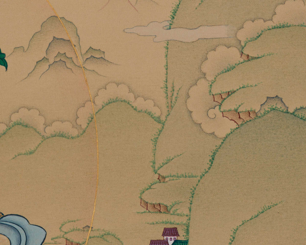 HAND-PAINTED WITH NATURAL LHASA STONE COLOR AND GENUINE 24K GOLD IN TRADITIONAL KARMA GADRI STYLE