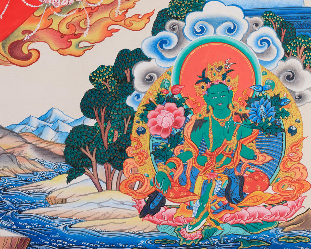 Vajrayogini Thangka Art with Manjushri & Green Tara | Wisdom, Enlightenment, and Protection