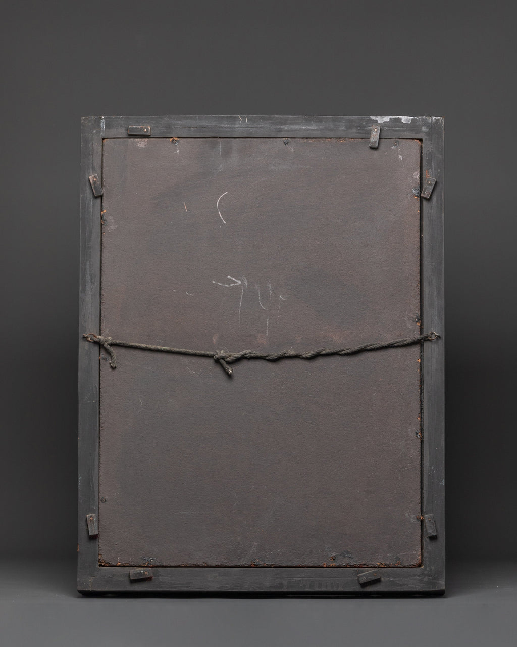 The gorgeous outside oak frame adds to the artwork's sacred aura, perfectly framing Vajrayogini's blazing presence. This handcrafted wall hanging, weighing 5.13kg, is intended for prominent display and serves as a reminder of heavenly strength and enlightenment. It displays the commitment of skilled artists who make traditional Tibetan art that commemorates decades of spiritual practice.
