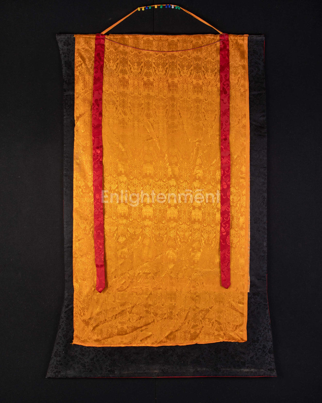 Framed with intricate brocade borders, the Thangka emanates a profound spiritual energy that enhances any space it occupies. This premium-quality artwork is a genuine masterpiece, perfect for meditation or as a visual guide for those seeking to understand the impermanent nature of life, along with the Buddhist teachings on suffering and liberation.