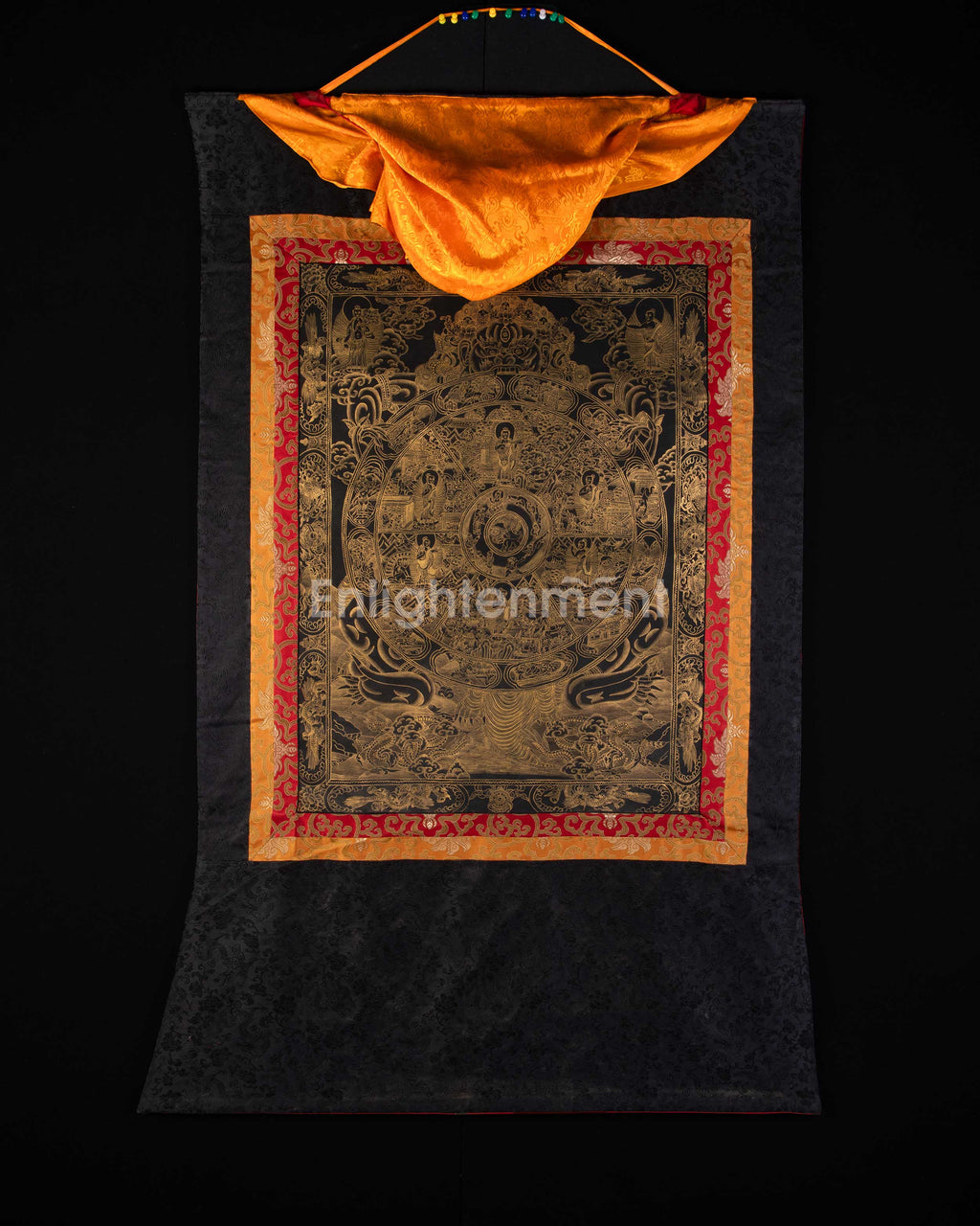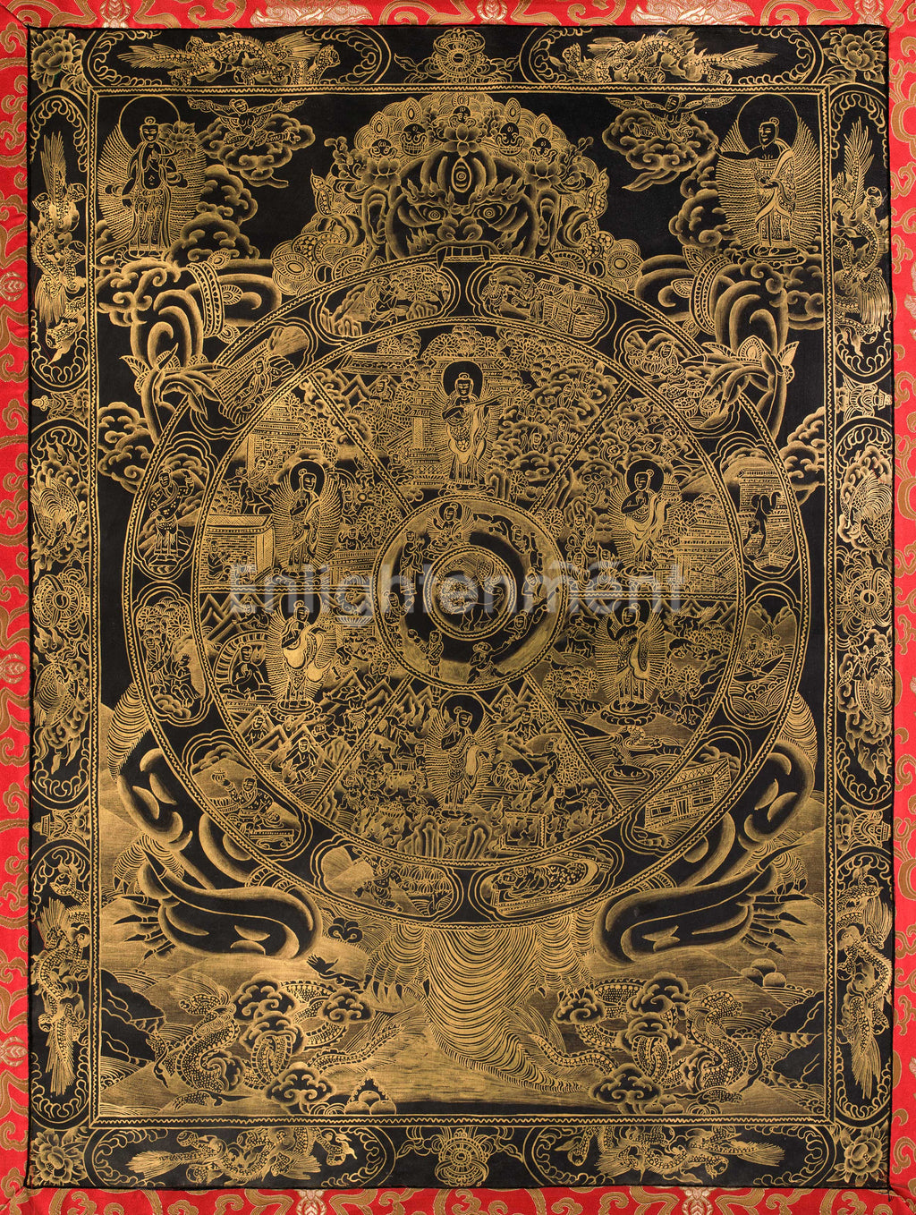 Fully Gold-Embellished Wheel of Life (Bhavacakra) Thangka | Spiritual Guide to the Cycle of Samsara