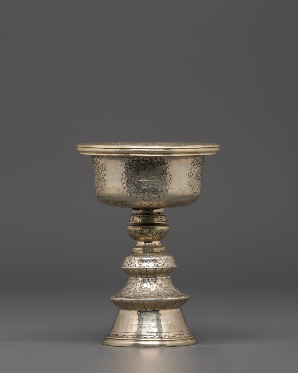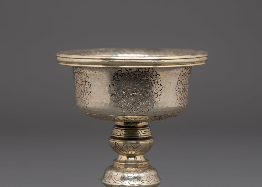 Handcrafted White Metal Butter Lamp | For Offering Rituals