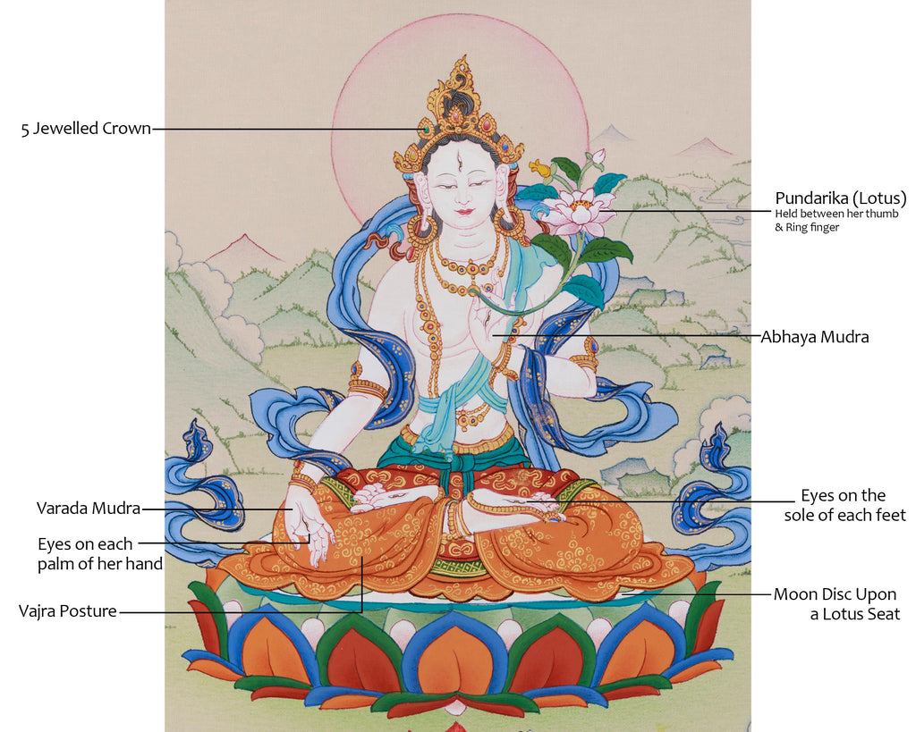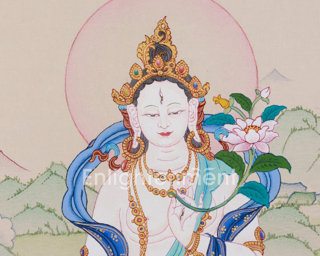 Himalayan White Tara Female Buddhist Thangka | The Divine Mother of Healing and Long Life