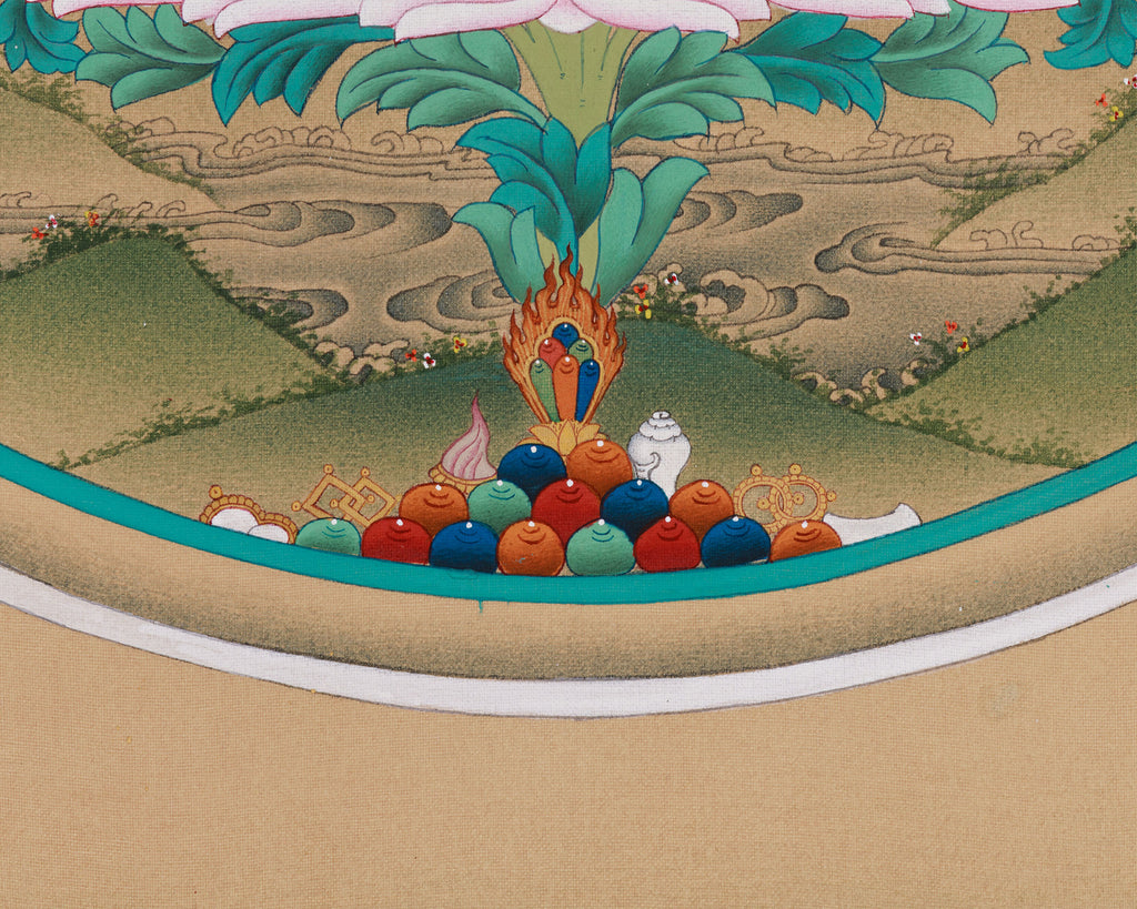 HAND-PAINTED WITH NATURAL LHASA STONE COLOR AND GENUINE 24K GOLD IN TRADITIONAL KARMA GADRI STYLE