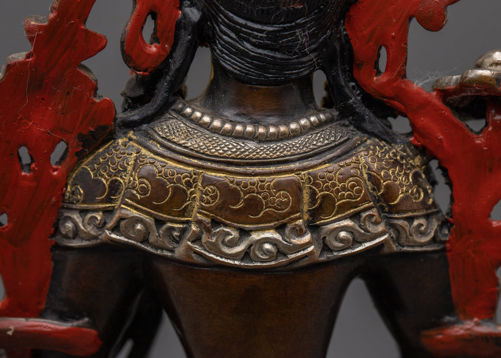 White Tara is depicted with seven eyes, which represent her caring alertness, and make her distinct. Aside from the two usual eyes, she has a third eye on her forehead, one on each hand, and one on the soles of her feet. Her graceful appearance and elegant design make this statue a powerful symbol of healing, compassion, and protection, inviting longevity and good health to those who revere her.
