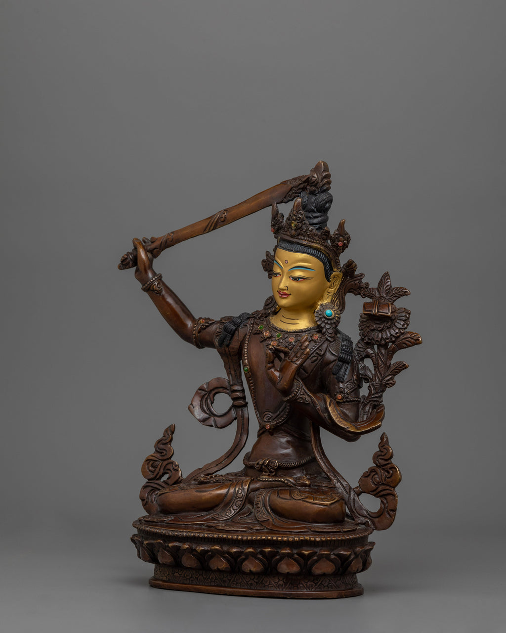 Bodhisattva Wisdom Deity Manjughosa Statue | Tibetan Hand-Carved Sculpture