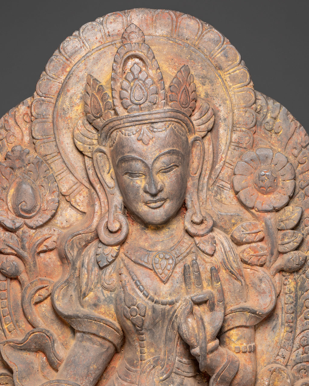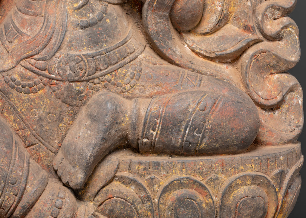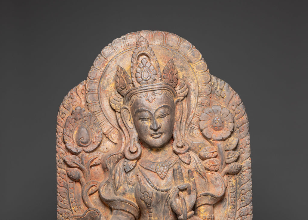 Handcrafted from wood, the statue is intricately decorated with exquisite flower designs, flowing clothing, and a tranquil look that exudes divine grace. The natural grain of the wood heightens its religious atmosphere, while the lotus base represents purity and enlightenment. This handcrafted sculpture is not only a sacred object of devotion but also a marvel of Himalayan creativity, making it extremely valuable to practitioners, collectors, and spiritual decor enthusiasts.
