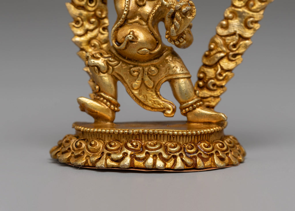 The Vajrapani Statue represents the Buddha's wrathful energy, directing it to remove negativity and protect the practitioner from harm. The gold-plated finish adds to the statue's mystical aura, while the copper material maintains its long-lasting spiritual presence. This monument is a visible reminder of Vajrapani's strength, courage, and commitment to protect people who pursue the path of justice. The Wrathful Bodhisattva Vajrapani Statue is ideal for those seeking spiritual protection and empowerment, as it can help them overcome both external and internal obstacles. The statue's use of copper and gold plating channels Vajrapani's energy, fostering courage, strength, and spiritual awakening. Whether displayed on a Buddhist altar, in a meditation room, or in your own home, this statue provides the spiritual power required to tackle life's problems and strengthen your connection to the holy.