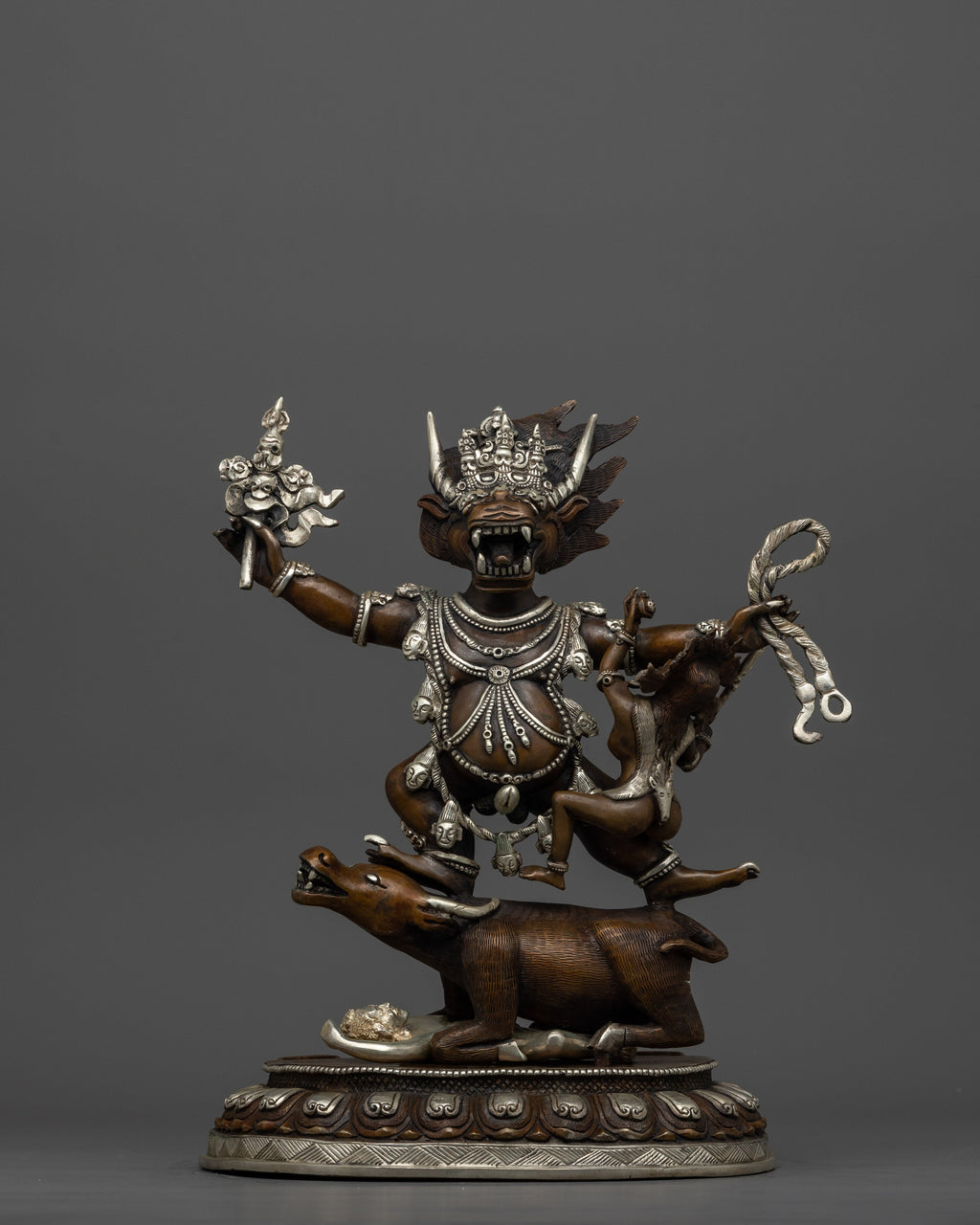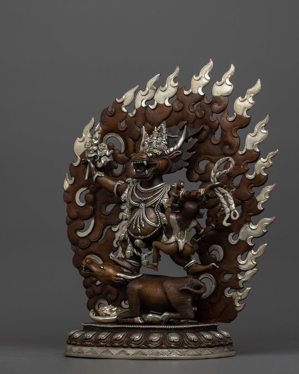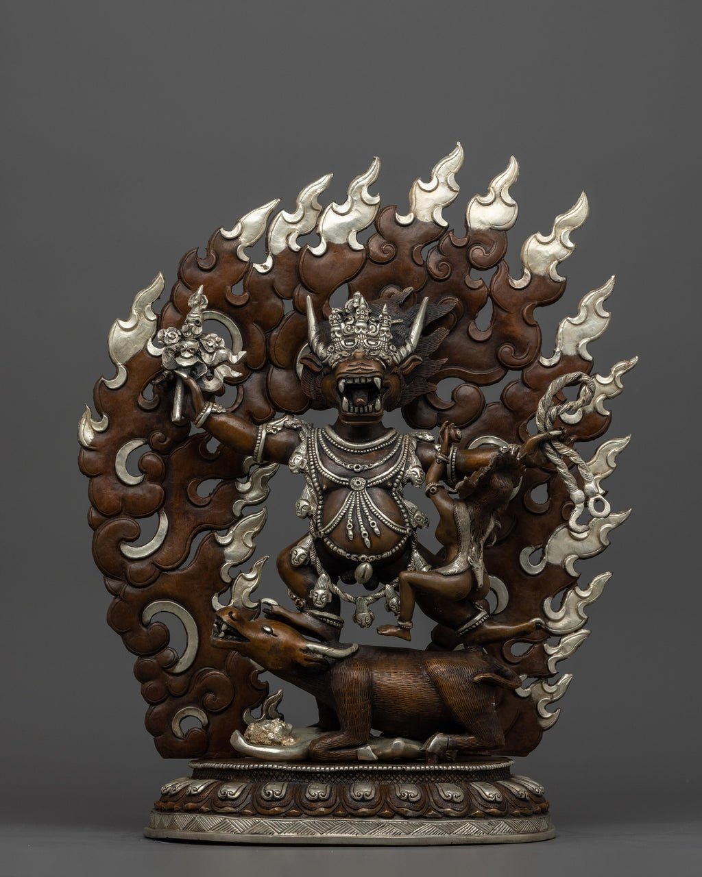 Silver-Plated Tibetan Wrathful Deity Dharmaraja Yama Statue For Spiritual Home Decor