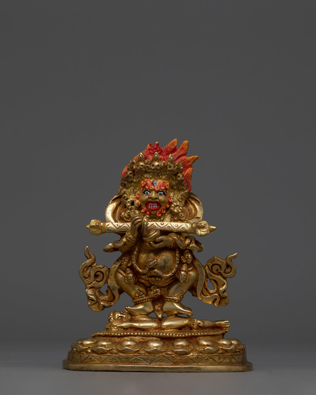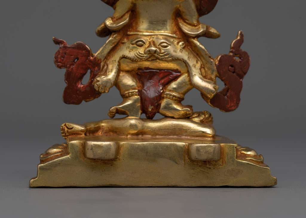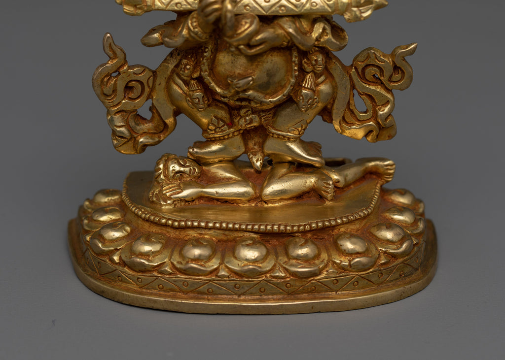Wrathful Protector Sakya Mahakala 24K Gold Gilded Altar Sculpture | 5.9” Buddhist Deity Sculpture