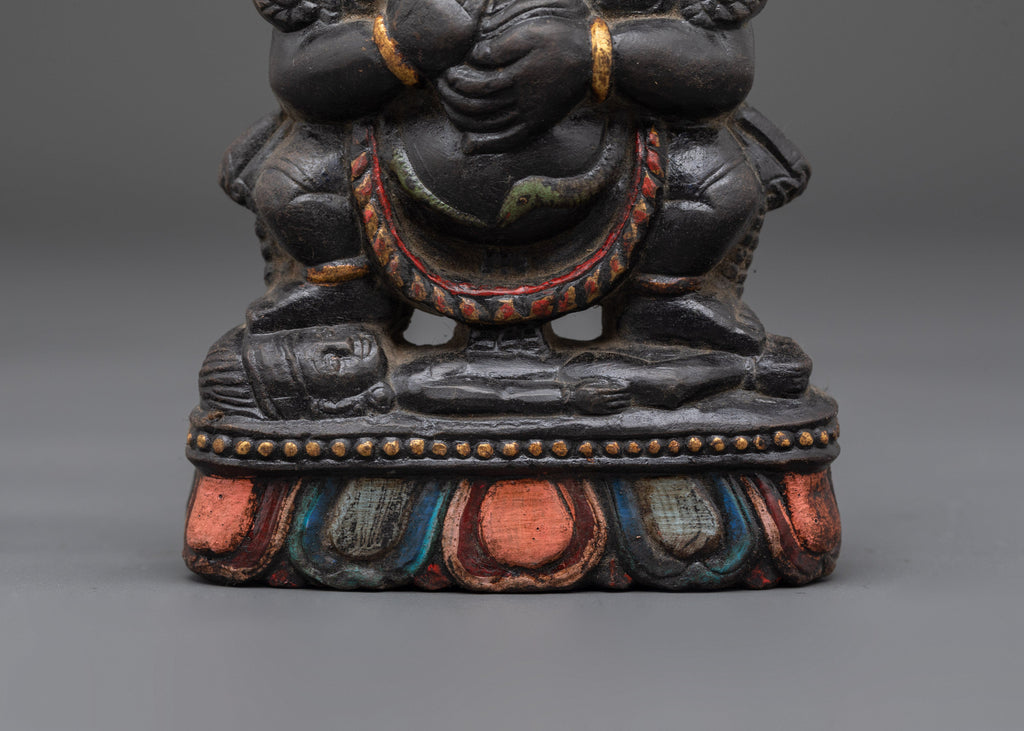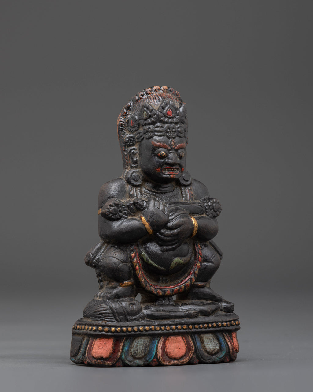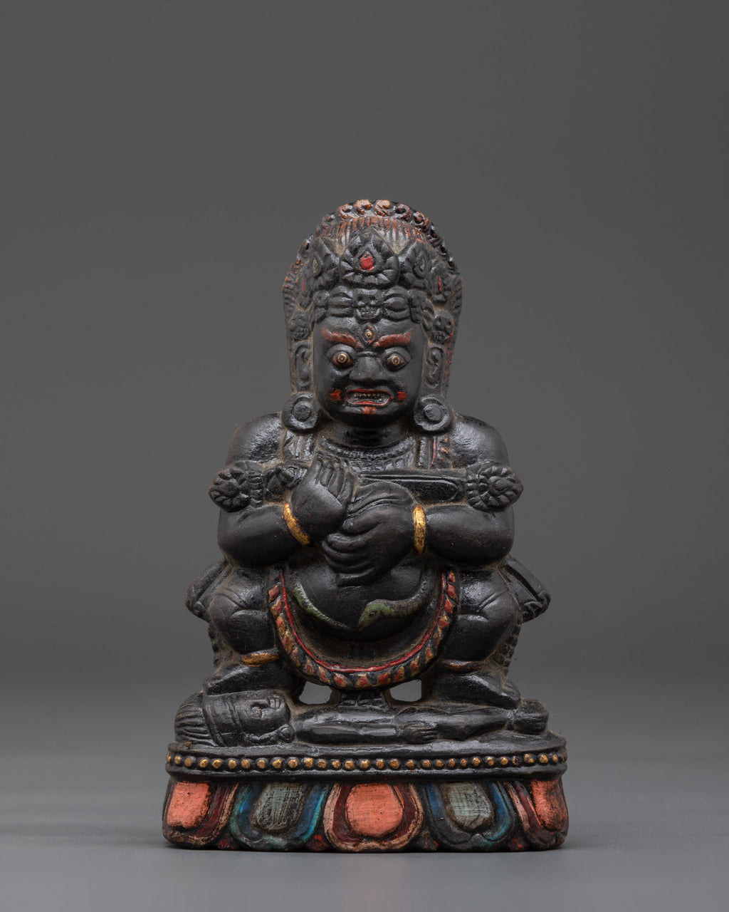 Handcrafted with care, this Wrathful Sakya Mahakala Sculpture features meticulous details, particularly in the face expression and flowing robes. The dark stone material is chosen for its connection to strength and spiritual protection, creating a strong foundation for the energy that this figure signifies. Displaying this sculpture in your space can invoke a sense of empowerment, while the image of Mahakala’s wrath is a reminder to ward off negativity and protect the purity of one’s spiritual journey.