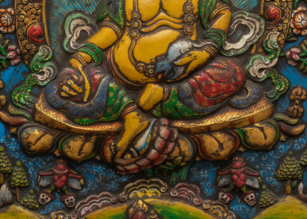 This Yellow Dzambhala Wall Hanging combines the divine energies of multiple Tibetan Buddhist figures, making it a powerful tool for bringing wealth, spiritual healing, and protection into your environment. Its intricate design and symbolic representations make it a perfect addition to any meditation room, altar, or living space.
