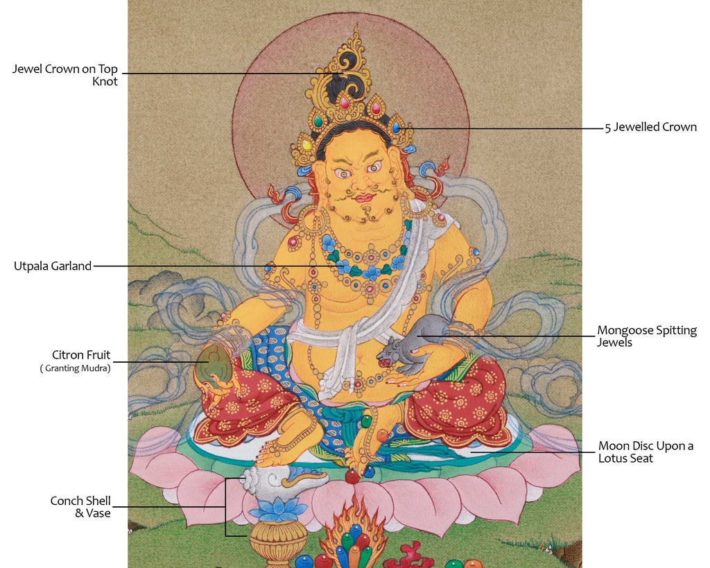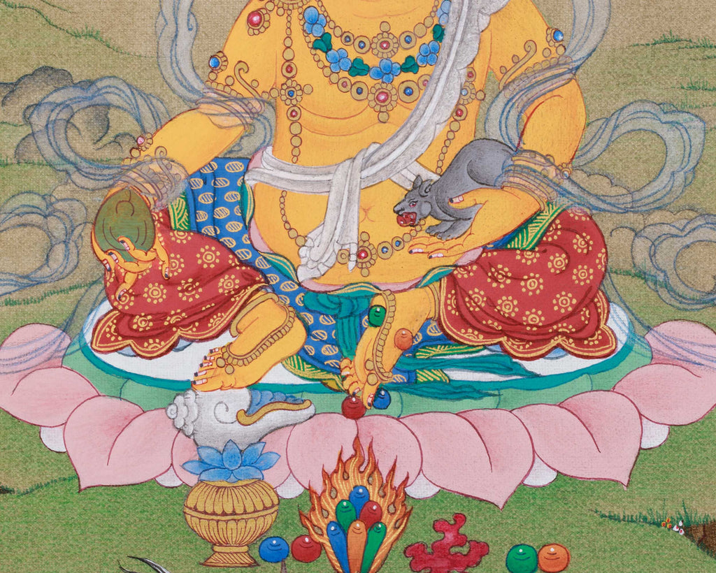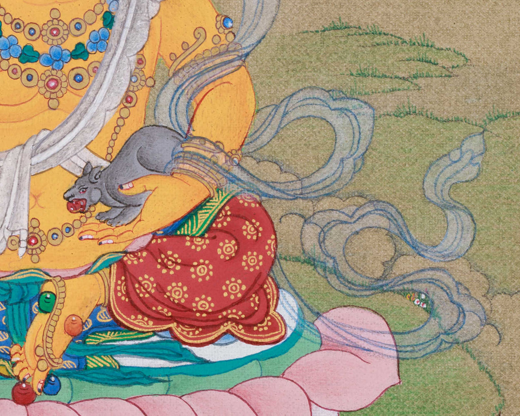 Traditional Zambhala Painting | Tibetan Artwork Representing Abundance, Luck, and Divine Protection
